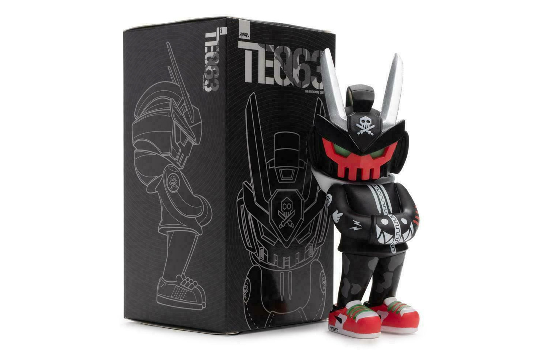 His created realm of ‘Bulletpunk’ has since been translated into toys, illustrations, wall pieces, live art murals, t-shirts and other merchandise.